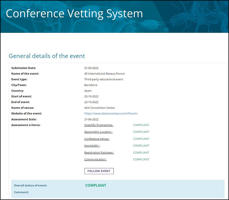 The Ethical MEDTECH has determined that the 45th International Dexeus Forum is COMPLIANT.