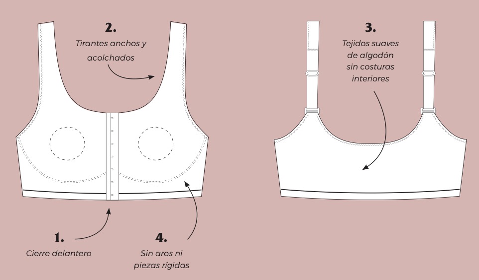 Wider straps, interior openings for easy insertion of prostheses, soft fabrics on the inside and the absence of underwiring and rigid pieces are some of the features of this collection, which aims to improve the quality of life of women who have undergone breast cancer surgery.